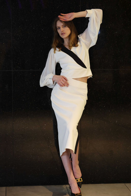 Black and White Suit with Green Detail and Belt
